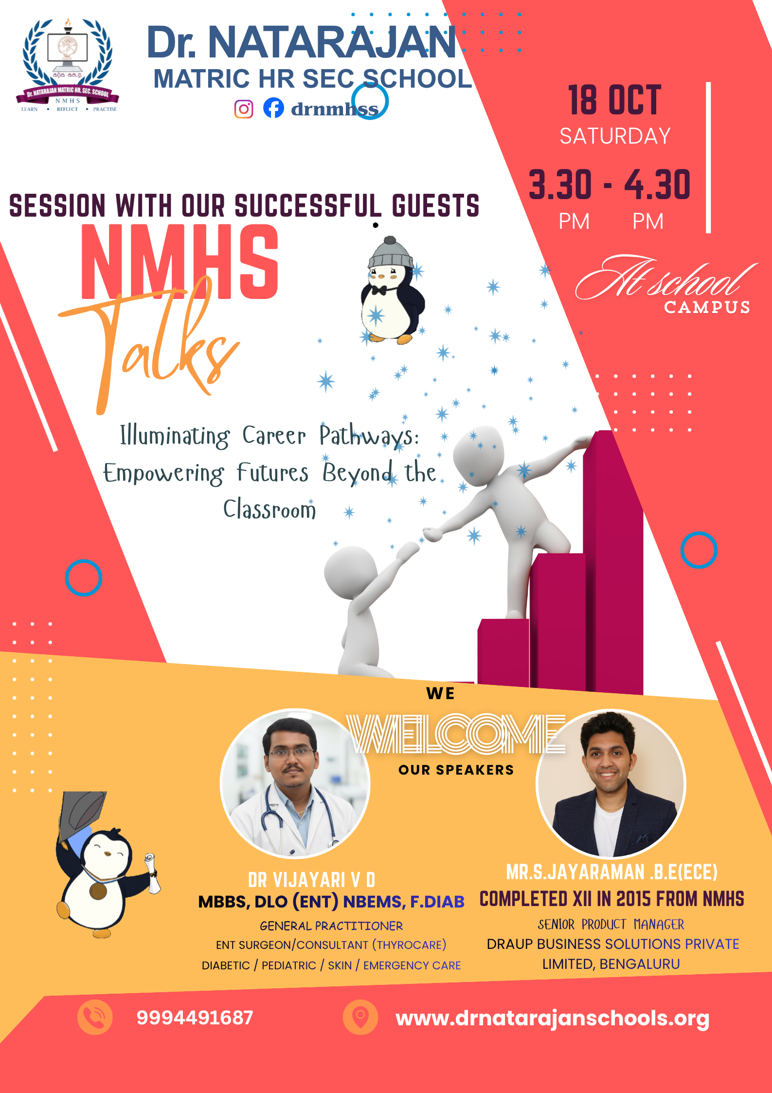Dr. Natarajan Matric Hr. Sec. School proudly hosted an inspiring edition of NMHS Talks, graced by two of our distinguished GUESTS—